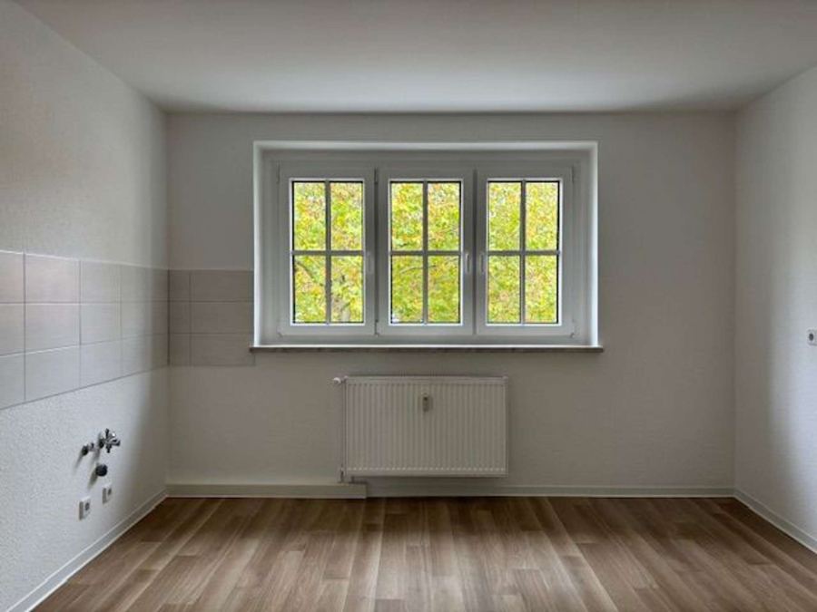 große Küche mit Fenster und Platz für einen Esstisch