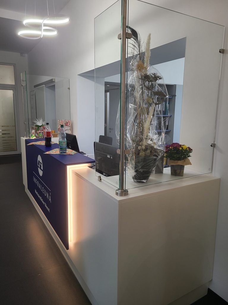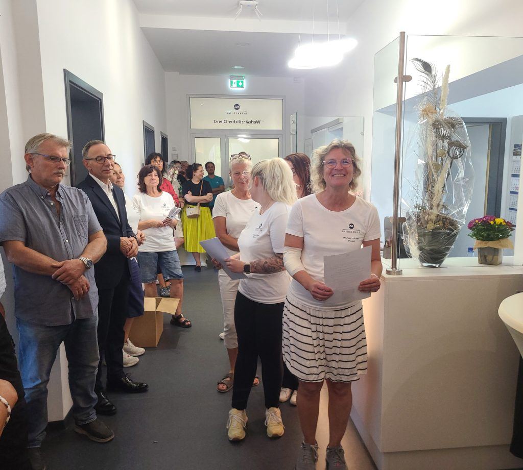Am 20. August 2025 wurden nach fünfmonatiger Bauzeit die frisch renovierten Gewerberäume im Erdgeschoss des Gesundheitszentrums an den bisherigen und neuen Mieter, den Werksärztlichen Dienst der InfraLeuna GmbH übergeben. In Anwesenheit der Mitarbeiter, der Handwerker und Herrn Dr. Günther als Geschäftsführer der InfraLeuna GmbH sowie vieler weiterer Gäste bedankte sich Frau Dr. Reeg als Bereichsleiterin für die modernen Räumlichkeiten, die ihr und ihren Mitarbeiterinnen künftig eine angenehme Arbeitsatmosphäre bieten.